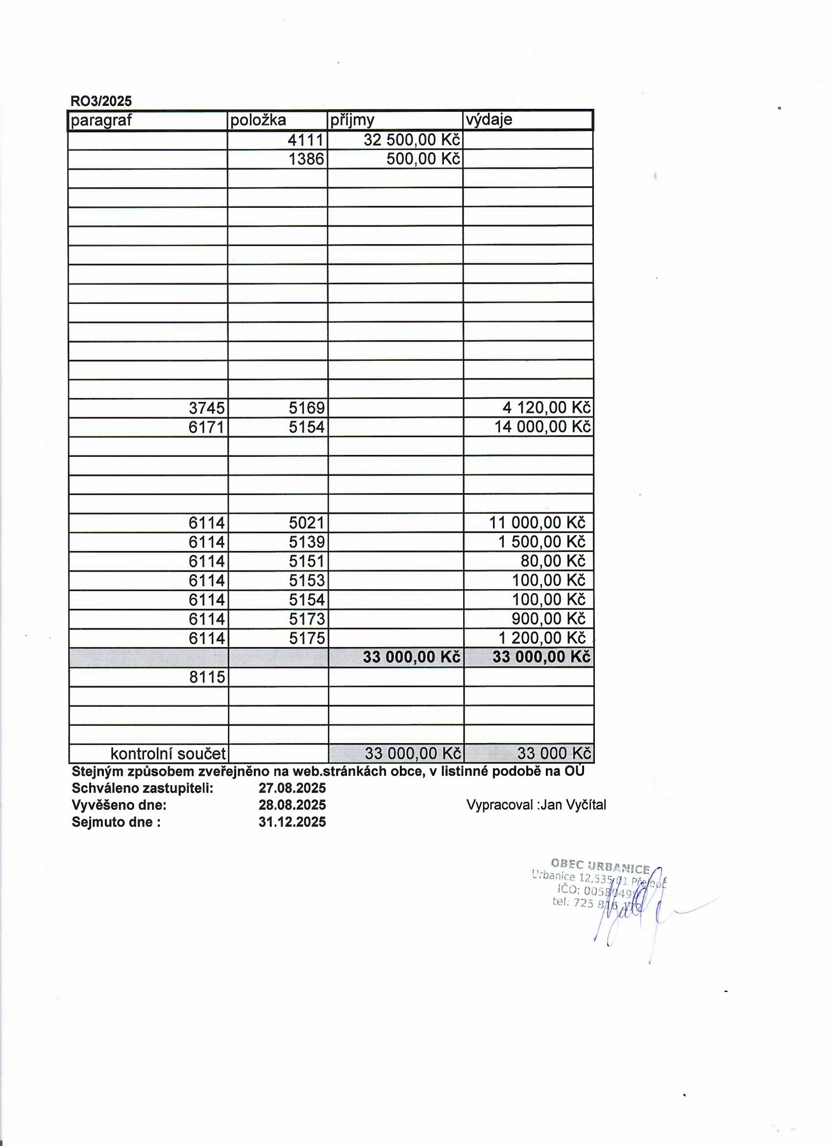 Rozpočtové opatření RO3_2025