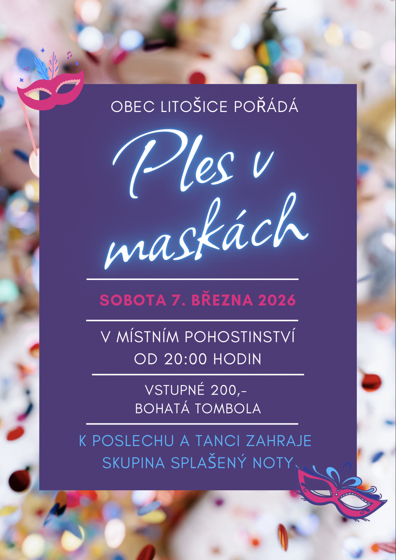 OBEC LITOŠICE POŘÁDÁ PLES V MASKÁCH